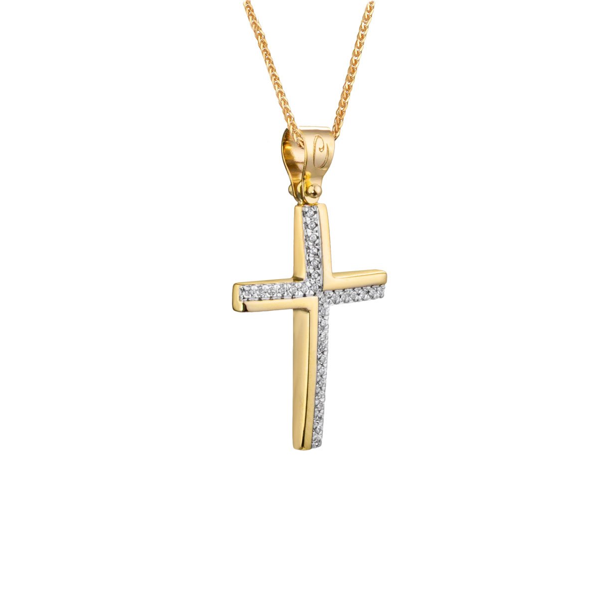 Σταυρός από χρυσό 14 καρατίων με λευκές πέτρες ζιργκόν