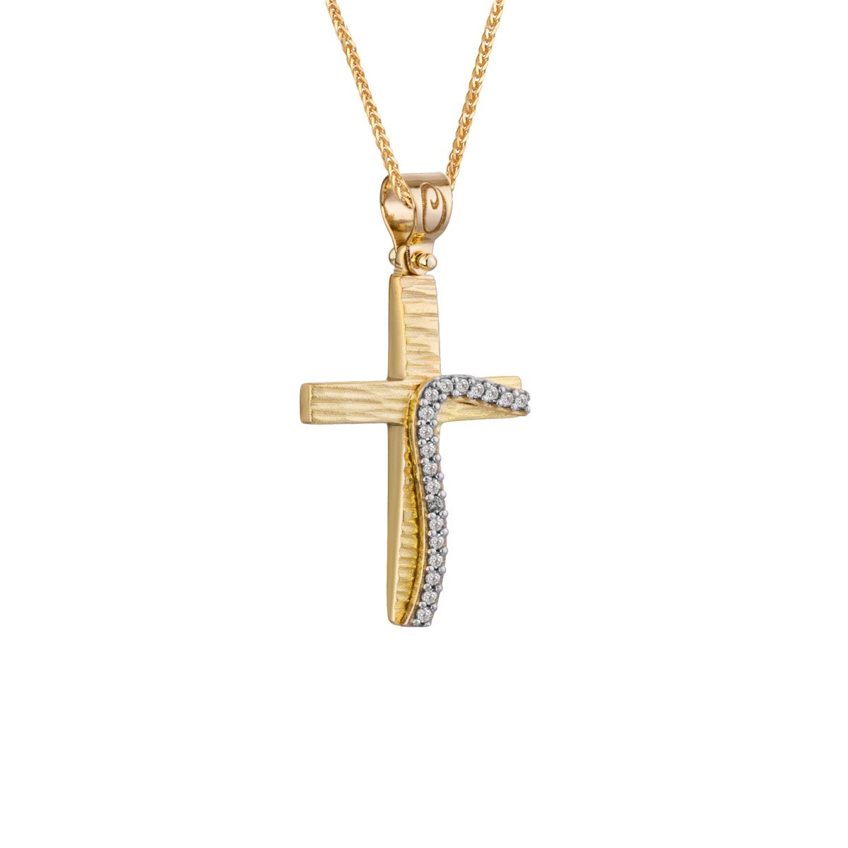 Σταυρός από χρυσό 14 καρατίων με λευκές πέτρες ζιργκόν