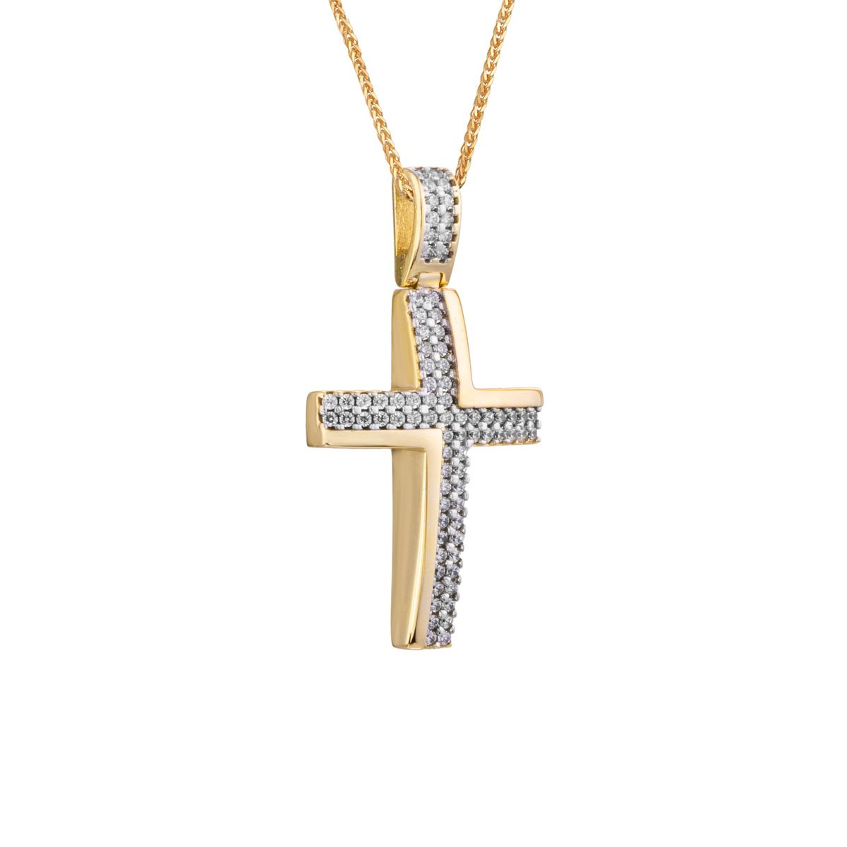 Σταυρός από χρυσό 14 καρατίων με λευκές πέτρες ζιργκόν
