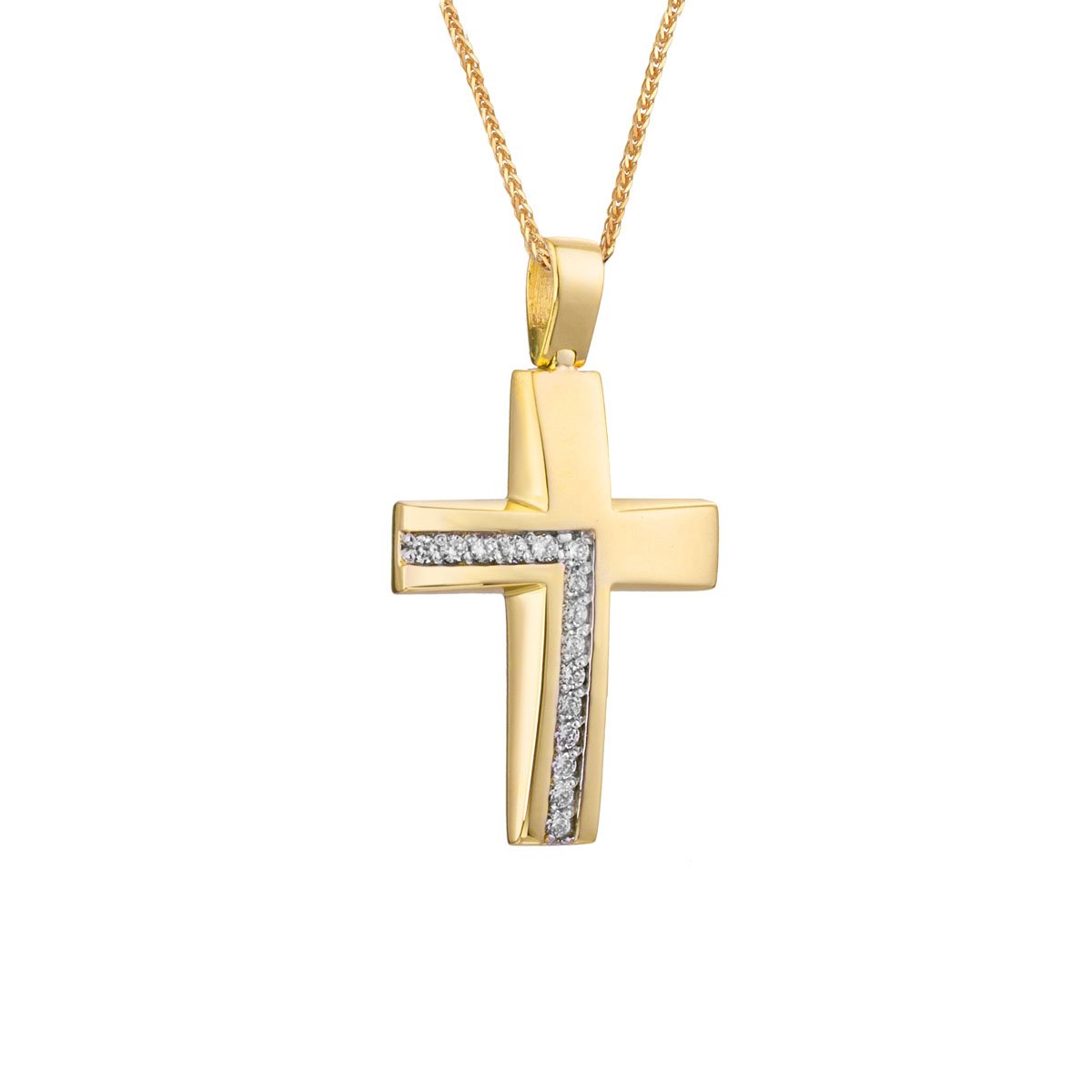Σταυρός από χρυσό 14 καρατίων με λευκές πέτρες ζιργκόν