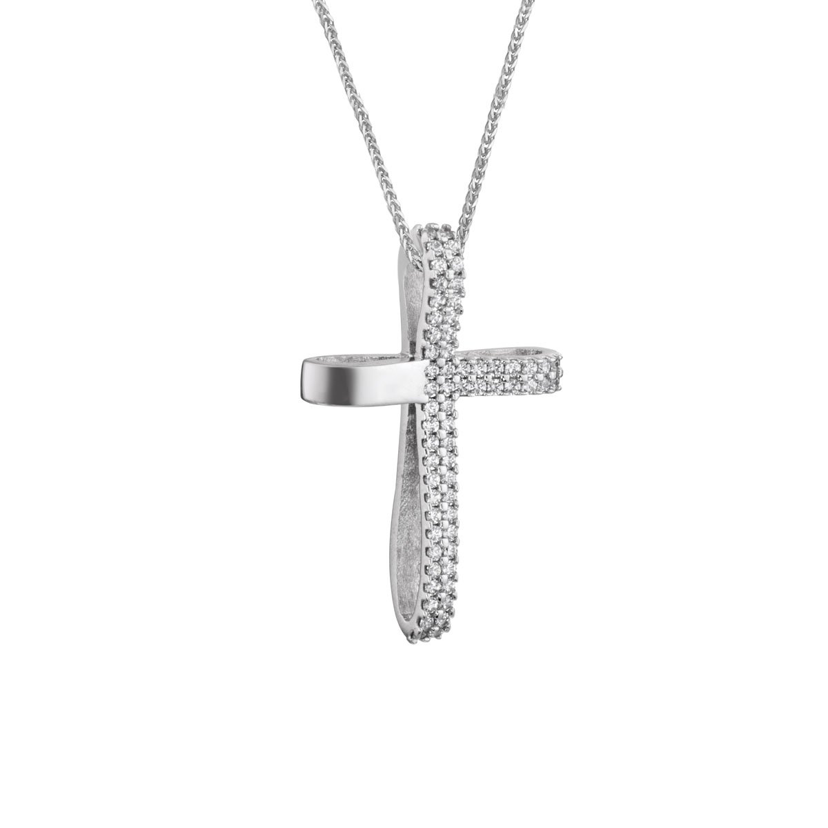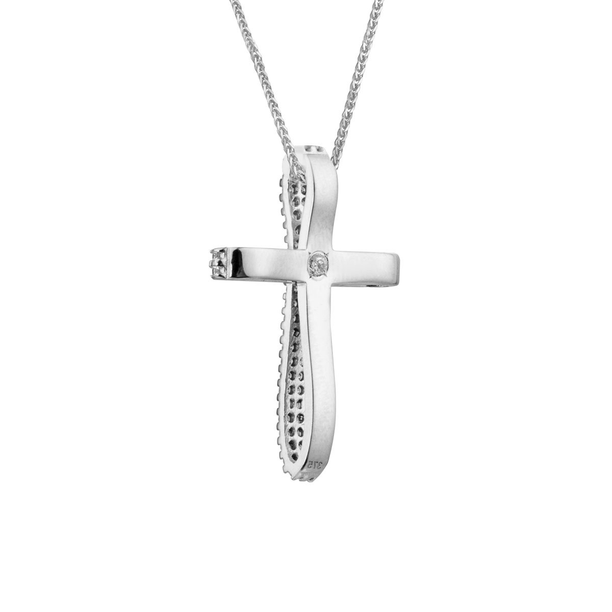 Σταυρός από λευκό χρυσό 14 καρατίων με λευκές πέτρες ζιργκόν