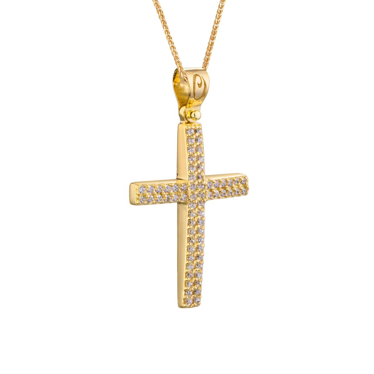 Σταυρός από χρυσό 14 καρατίων με λευκές πέτρες ζιργκόν