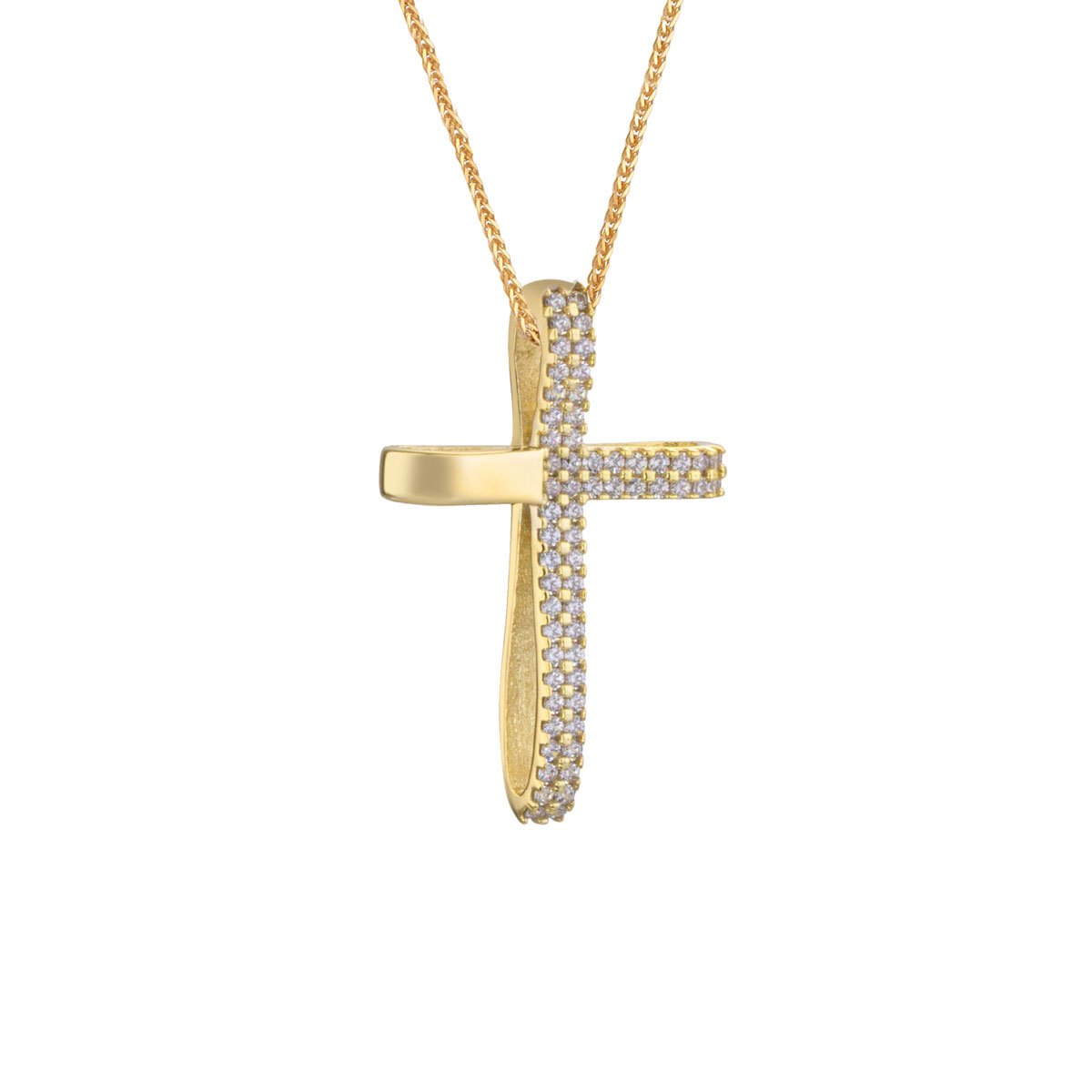 Σταυρός από χρυσό 14 καρατίων με λευκές πέτρες ζιργκόν